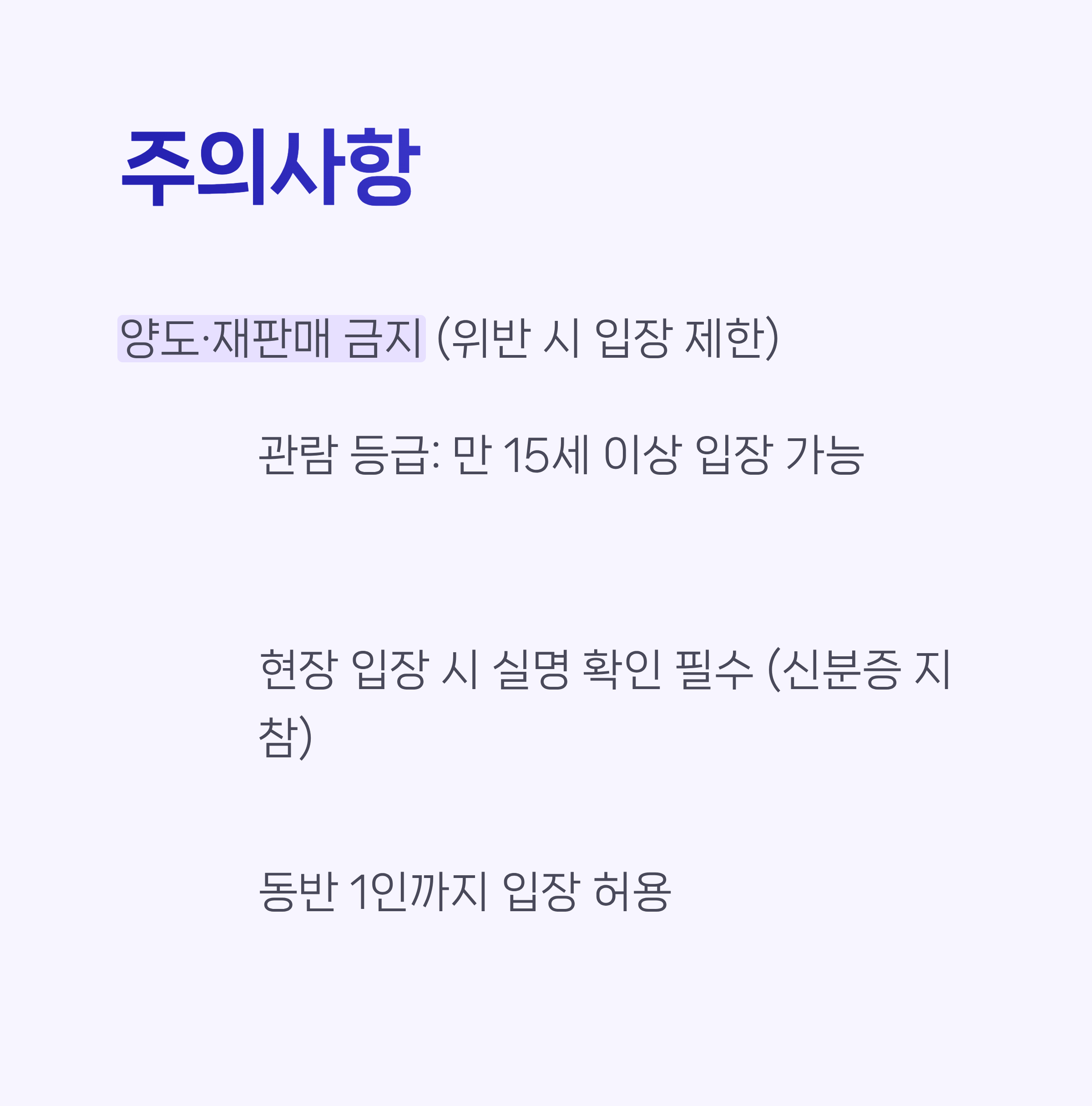 - 양도 및 재판매 금지 (위반 시 입장 불가)