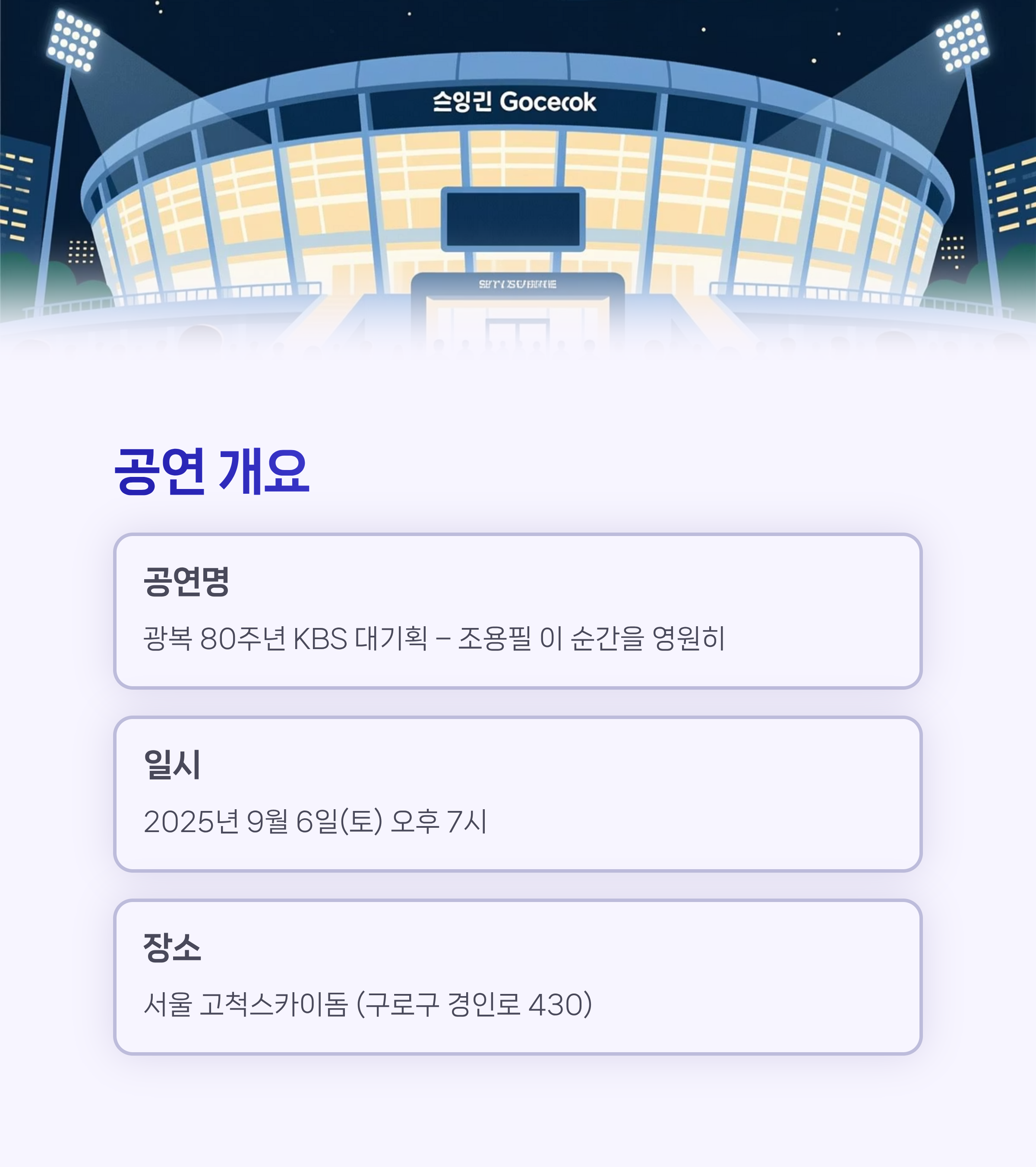 조용필 고척돔 무료 콘서트 예매 방법 총정리 (2025 일정 포함)