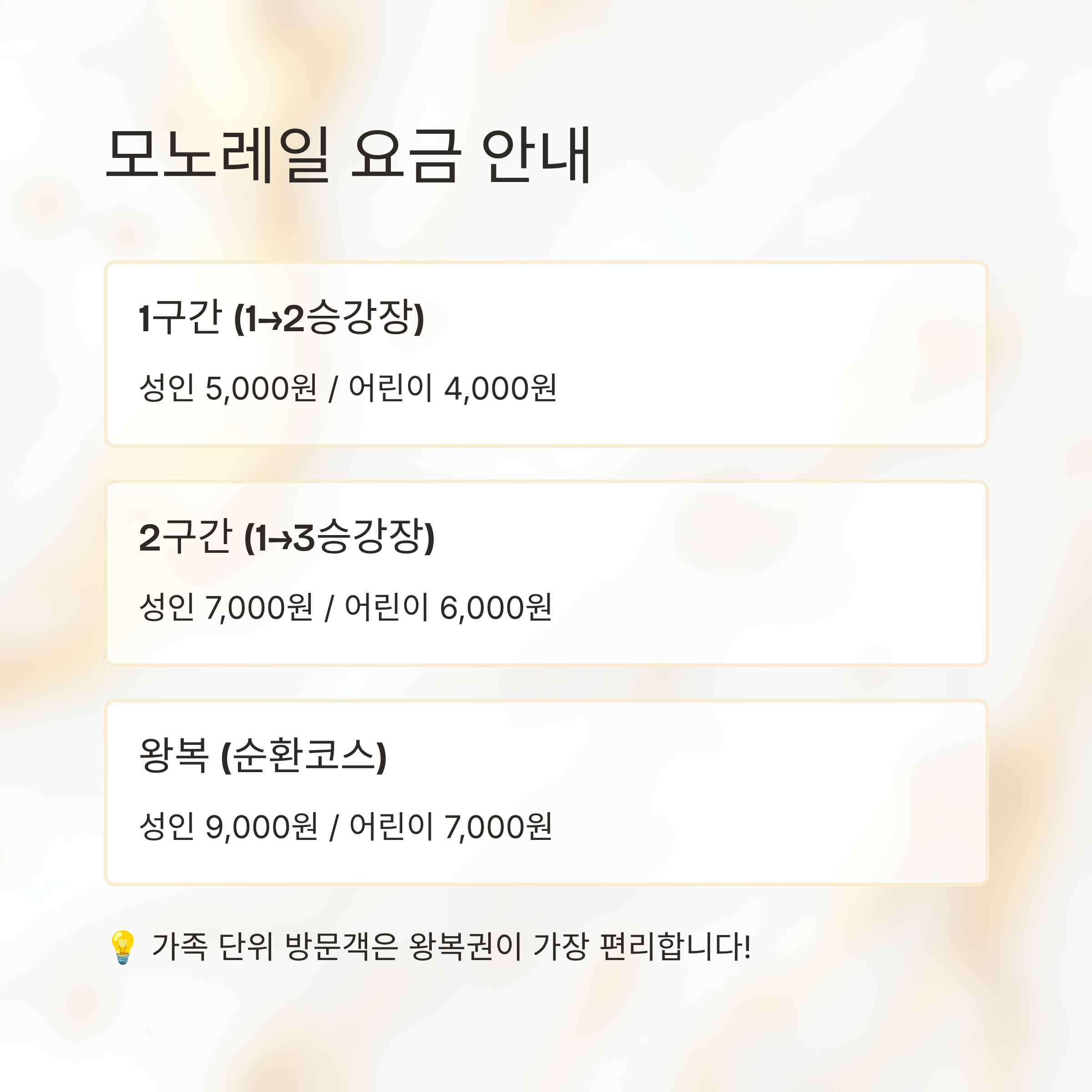 👉 특히 가족 단위 방문객은 왕복권을 이용하면 편리합니다.