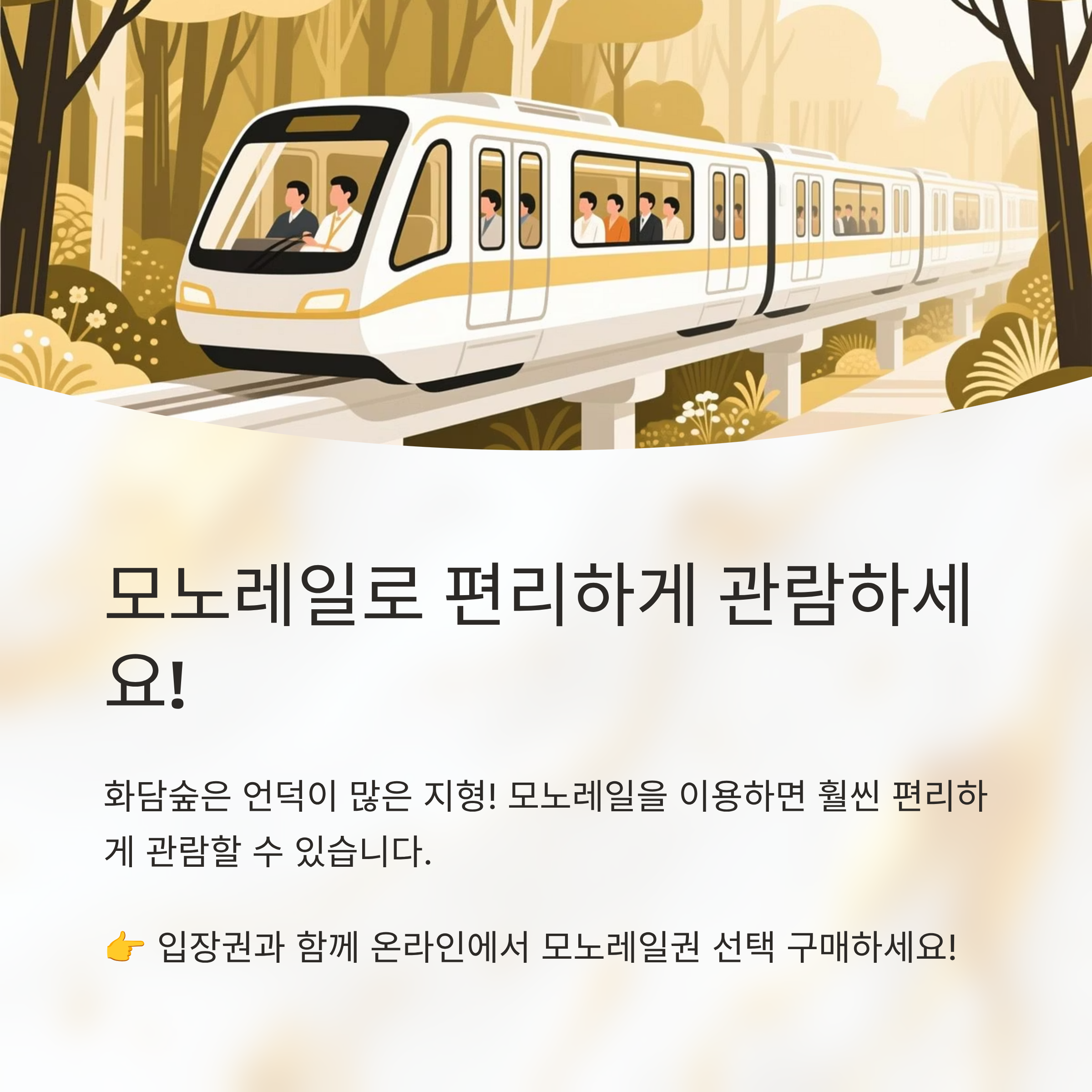 쾌적한 관람을 위해 입장료·모노레일 요금·주차 안내까지 미리 확인하시고, 예약을 서둘러 준비하시길 바랍니다.