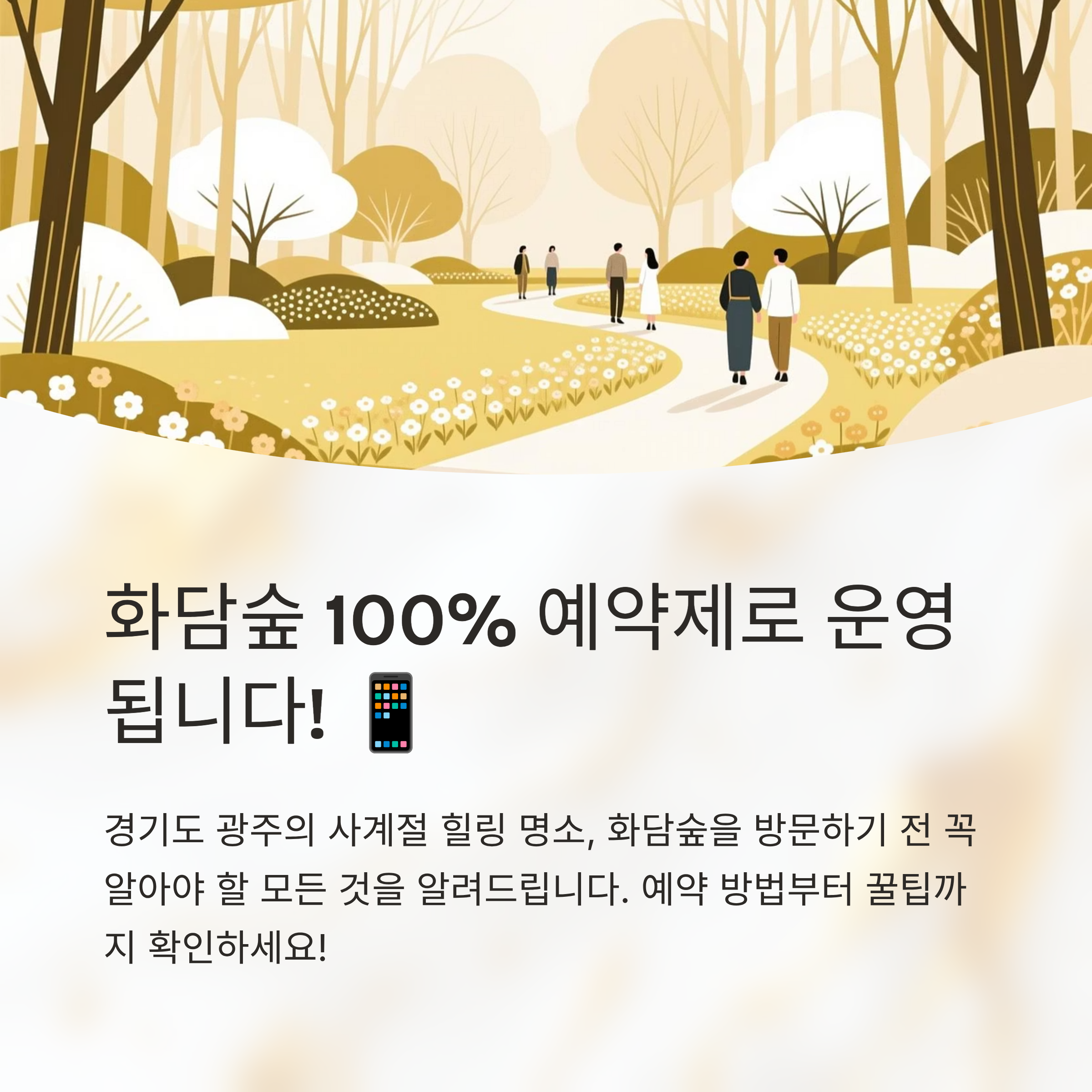경기도 광주에 위치한 화담숲은 사계절 내내 다양한 테마 정원을 즐길 수 있는 힐링 명소입니다. 하지만 화담숲은 100% 온라인 예약제로 운영되기 때문에, 방문 전 반드시 예약을 완료해야 합니다. 이번 글에서는 화담숲 예약 방법, 입장료와 모노레일 요금, 주요 코스와 이용 팁까지 한눈에 정리했습니다.