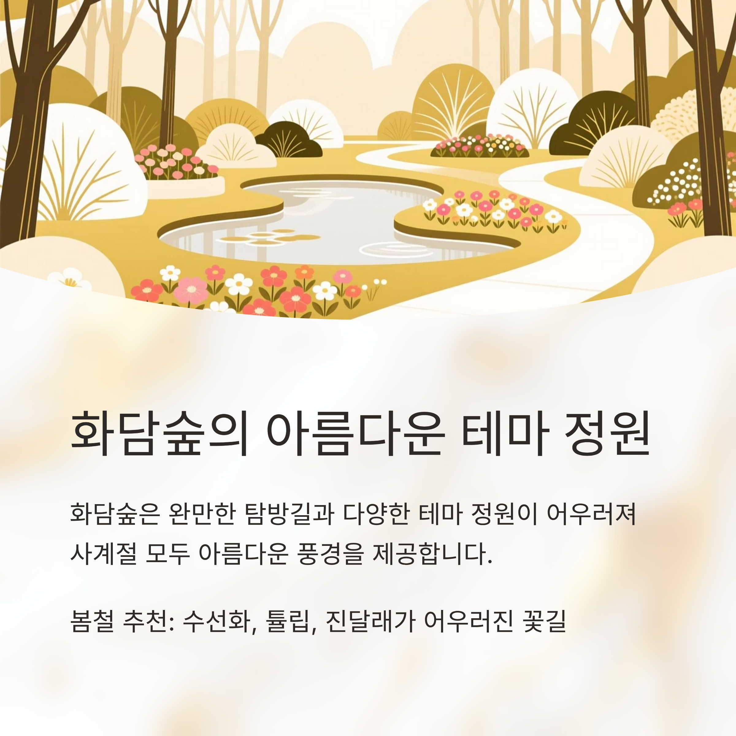 - 봄철 추천: 수선화, 튤립, 진달래가 어우러진 꽃길