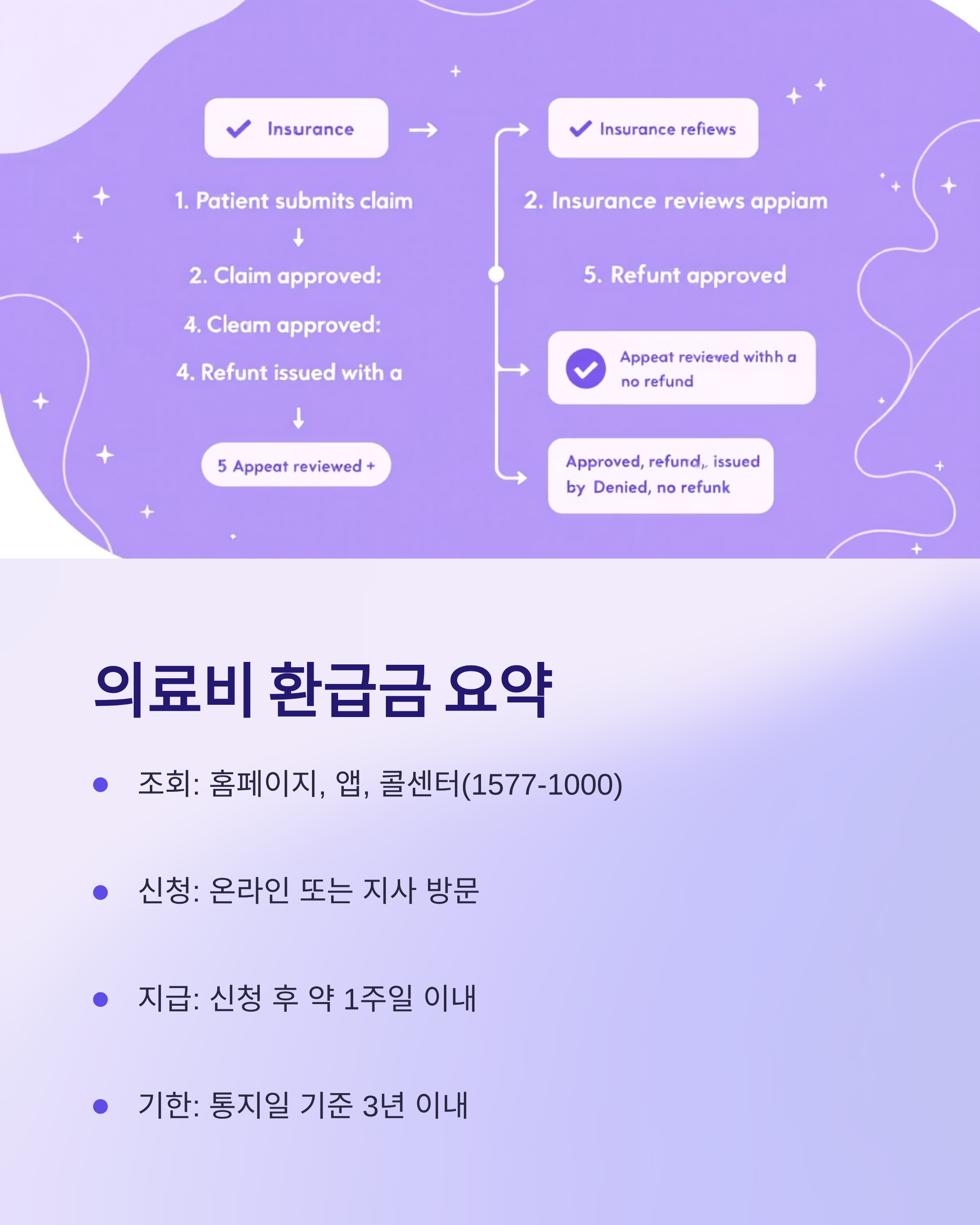 - 의료비 환급금 조회 방법: 국민건강보험 홈페이지, ‘The건강보험’ 앱, 콜센터(1577-1000)