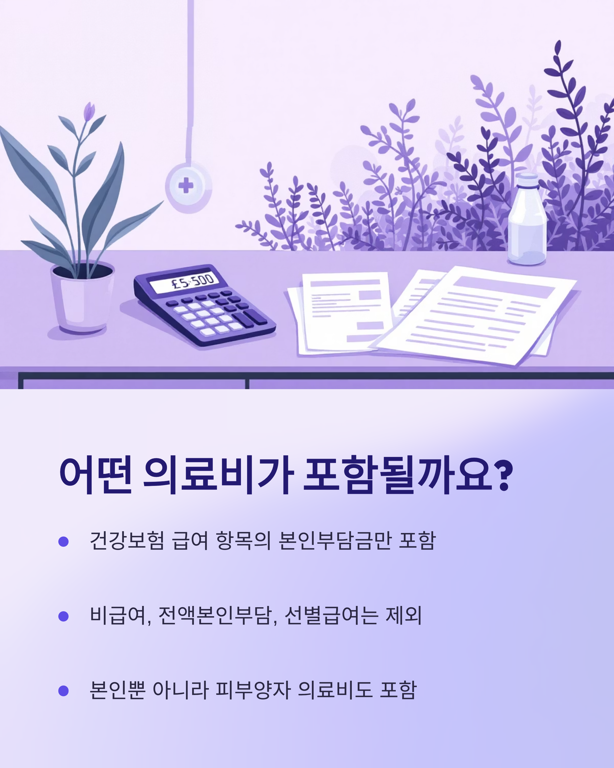 - 본인뿐 아니라 피부양자 의료비도 포함