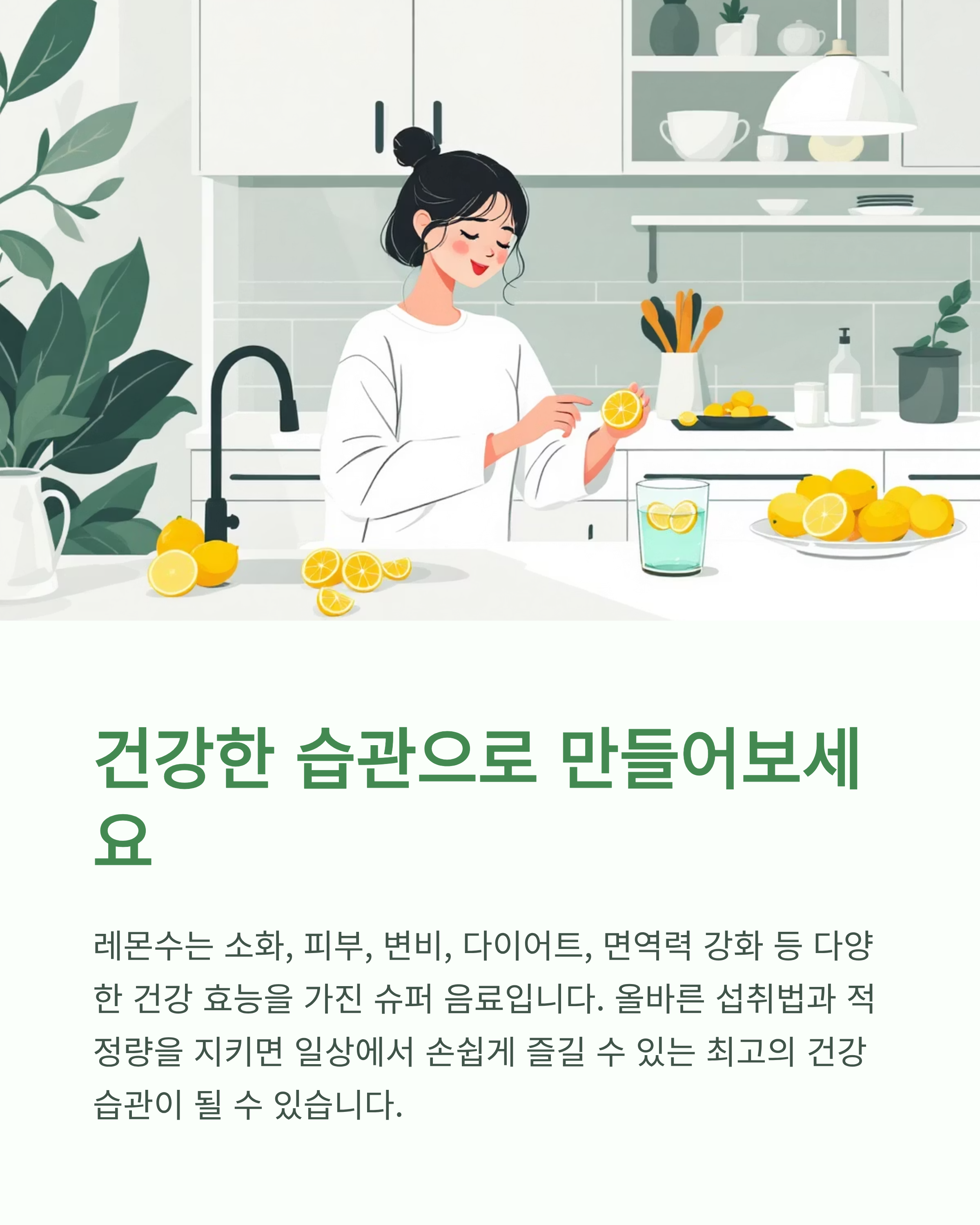 레몬수는 소화, 피부, 변비, 다이어트, 면역력 강화 등 다양한 건강 효능을 가진 슈퍼 음료이지만, 치아 부식과 위장 자극 같은 부작용도 존재합니다. 올바른 섭취법과 적정량을 지키면 일상에서 손쉽게 즐길 수 있는 최고의 건강 습관이 될 수 있습니다.