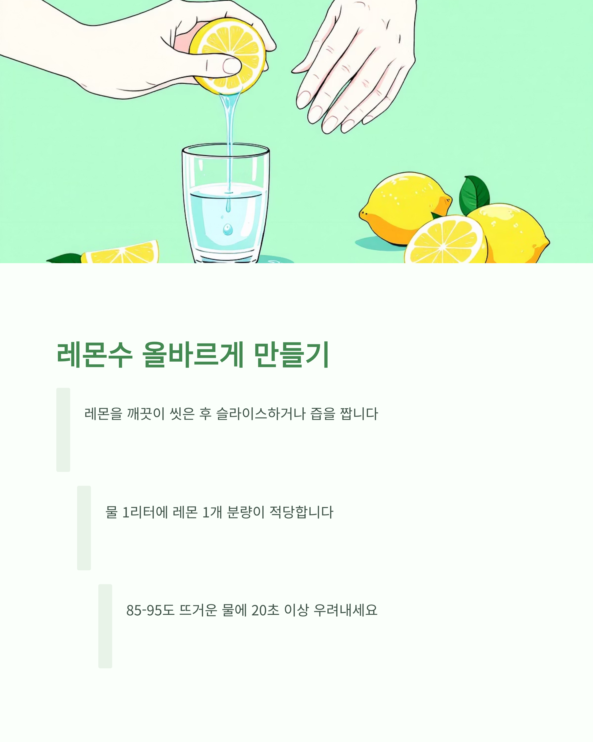 - 레몬을 깨끗이 씻은 후 슬라이스하거나 레몬즙을 준비합니다.
