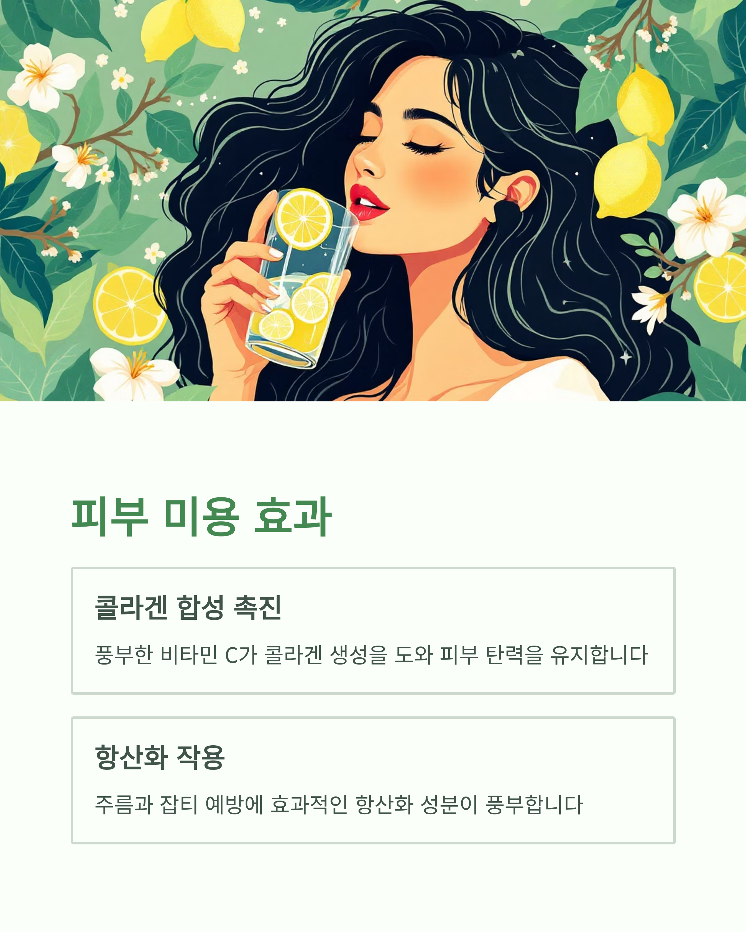 비타민 C가 풍부해 콜라겐 합성을 돕고 피부를 촉촉하고 탄력 있게 유지합니다. 항산화 효과로 주름, 잡티 예방에도 효과적입니다.