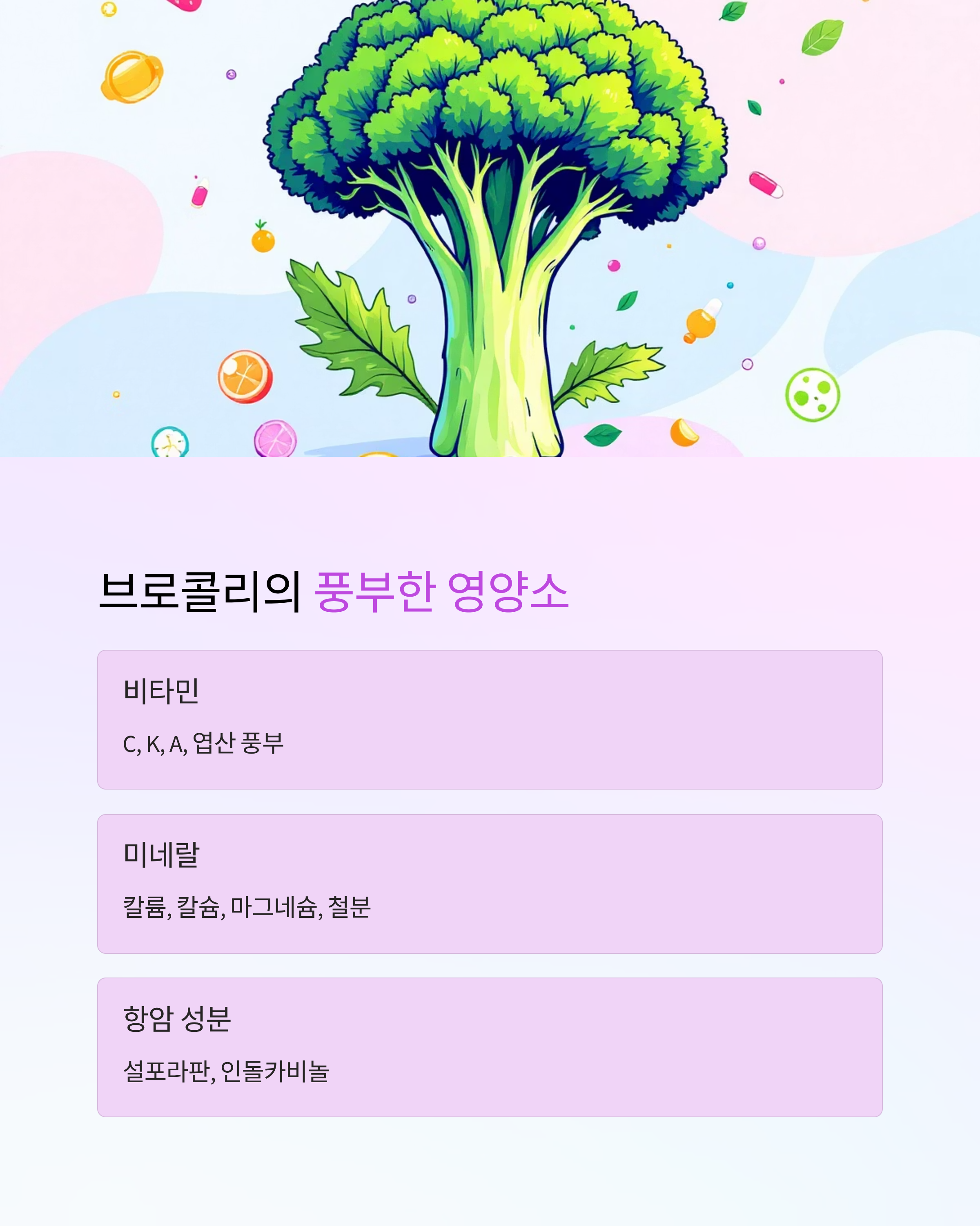 - 항암 성분: 설포라판, 인돌카비놀