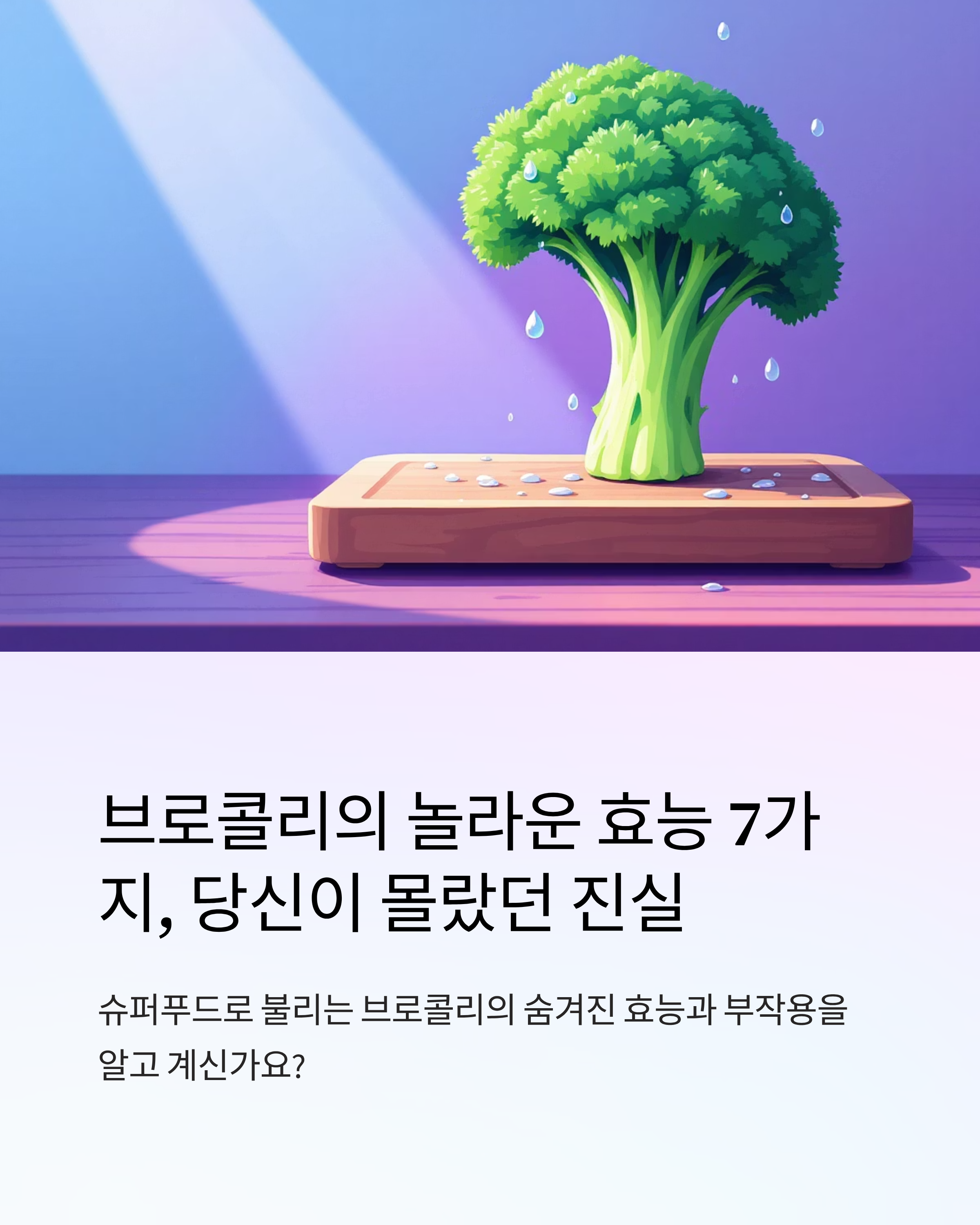 브로콜리는 항암, 심혈관, 면역력 강화 등 다양한 효능을 가진 대표적인 슈퍼푸드입니다. 그러나 갑상선 기능 저하, 약물 상호작용 등 주의해야 할 부작용도 있으므로 올바른 섭취와 보관이 필요합니다.