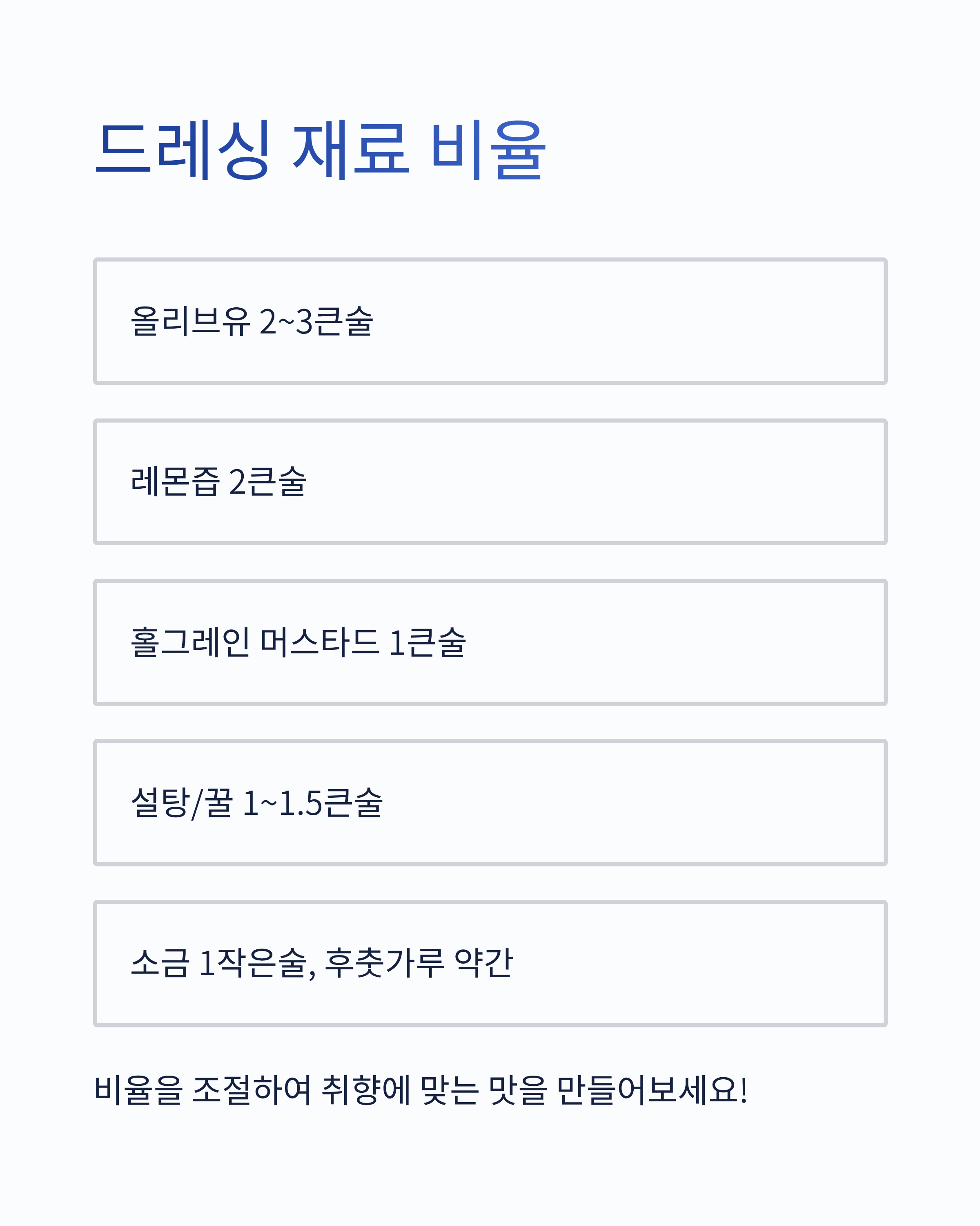 맛을 달리하는 드레싱 비율