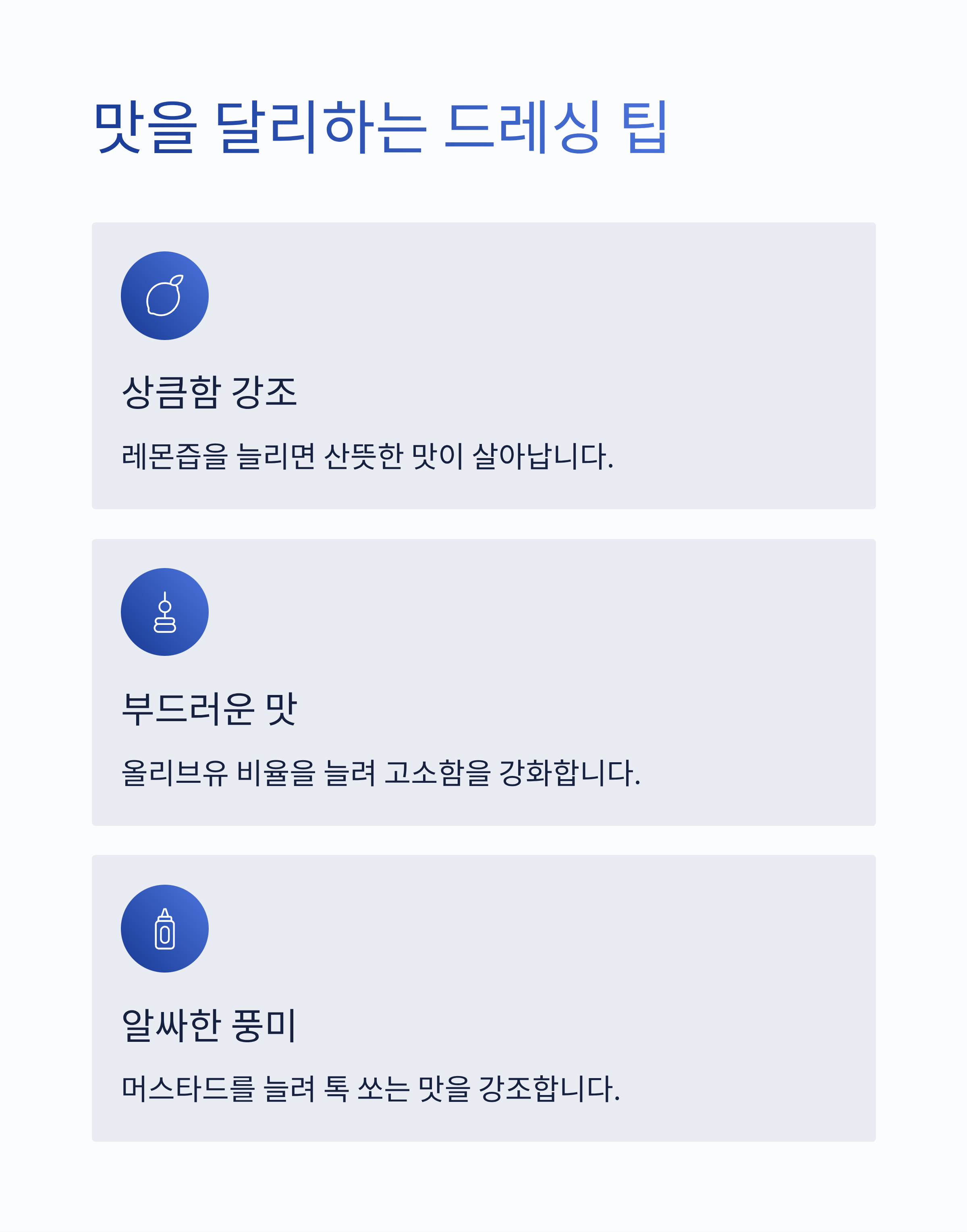 - 상큼함 강조: 레몬즙을 늘리면 산뜻한 맛이 살아남.
