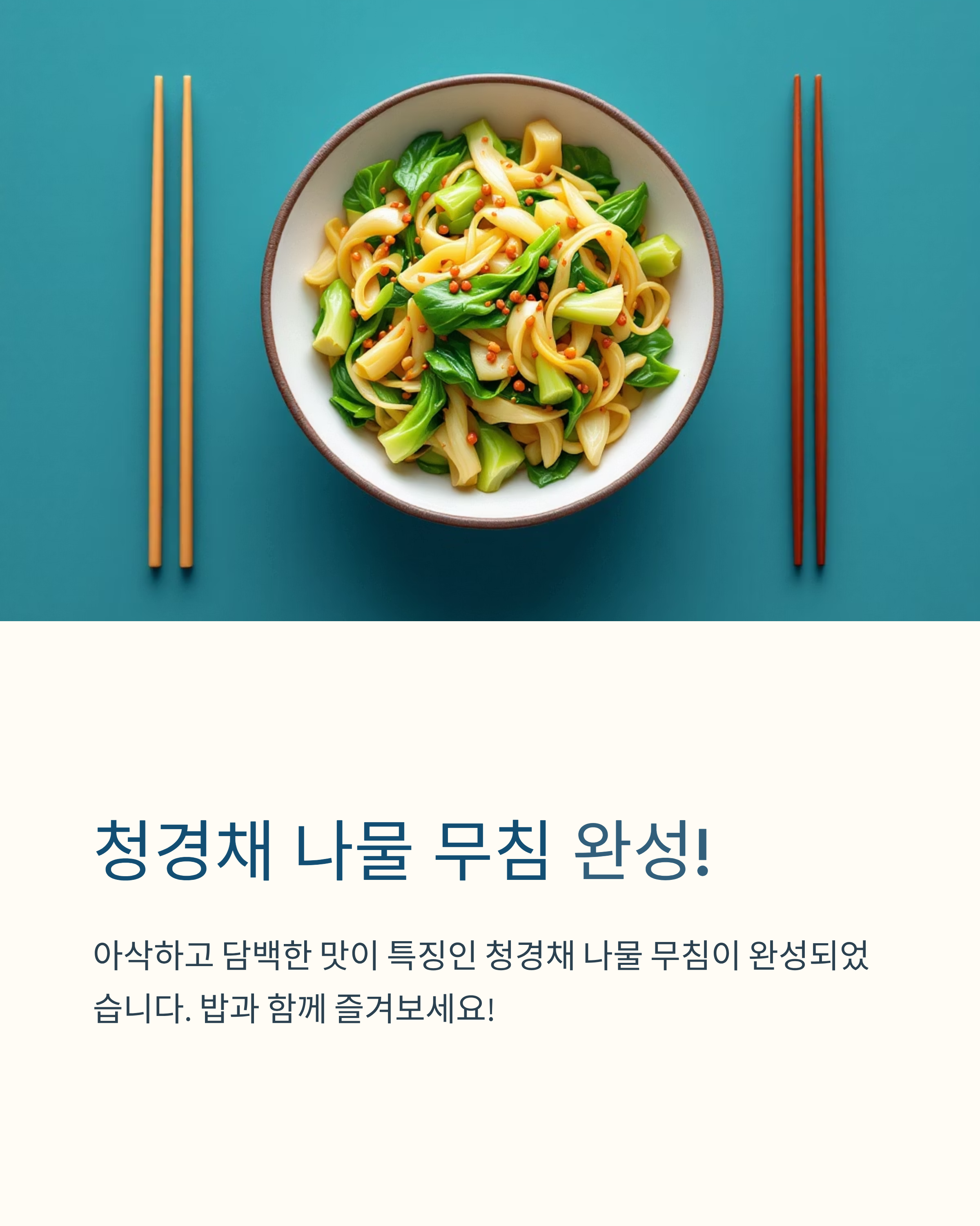 청경채 나물 무침은 아삭하고 담백한 맛이 특징인 반찬으로, 영양가도 풍부해 밥상에 자주 올리기 좋은 메뉴입니다.