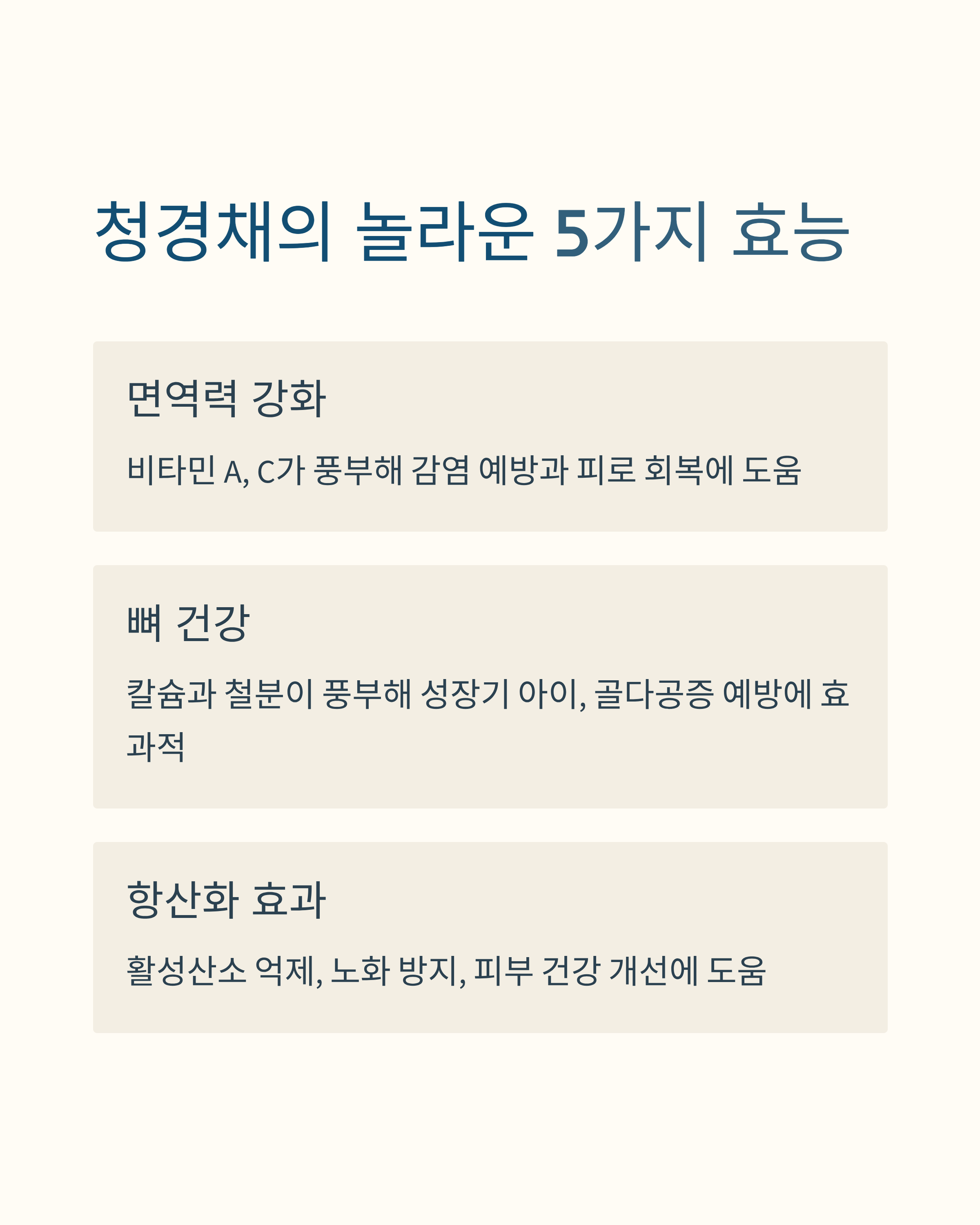 - 면역력 강화: 비타민 A, C가 풍부해 감염 예방과 피로 회복에 도움.