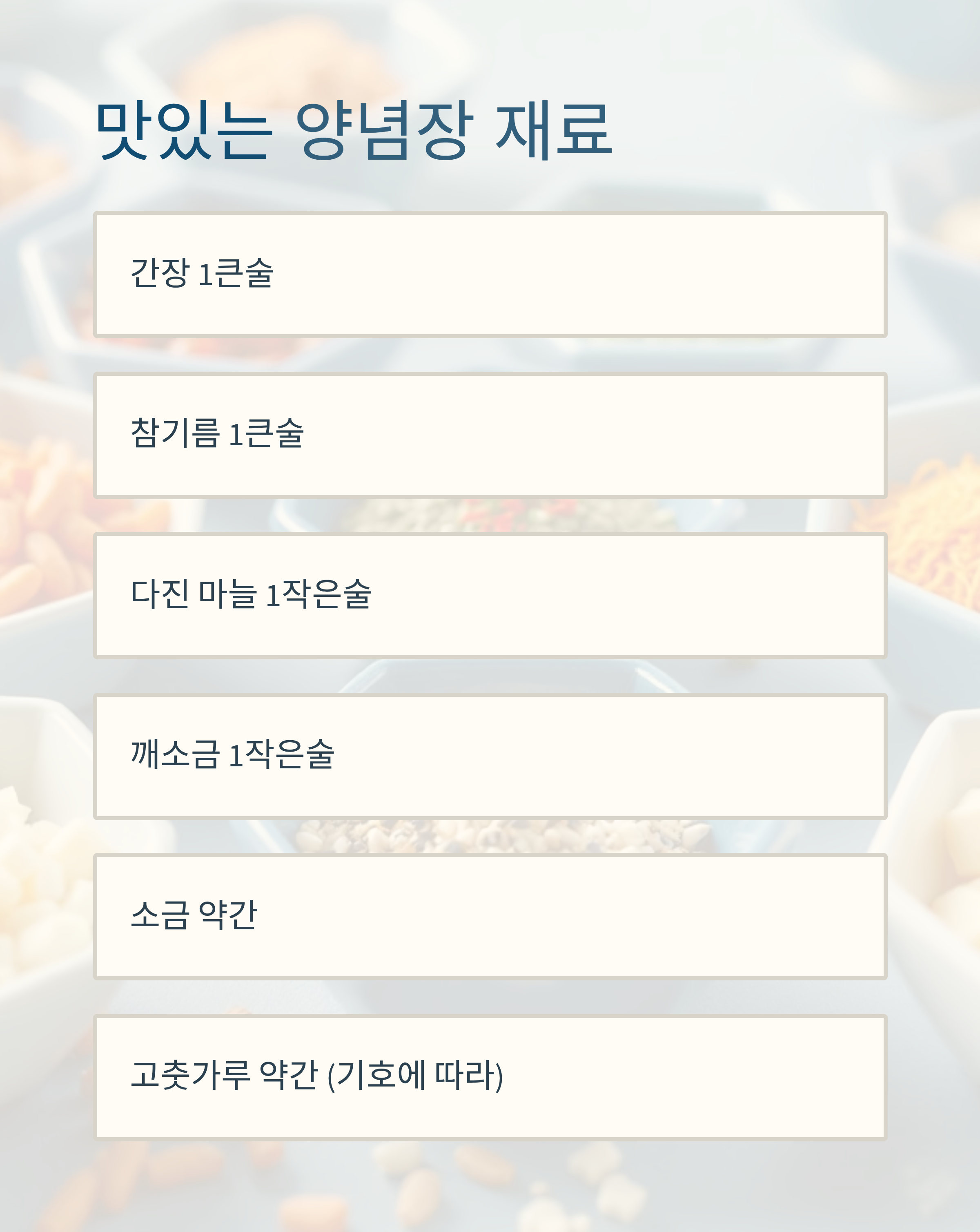👉 포인트: 참기름과 깨소금을 넣으면 고소함이 살아나고, 고춧가루를 추가하면 칼칼한 맛을 낼 수 있습니다.