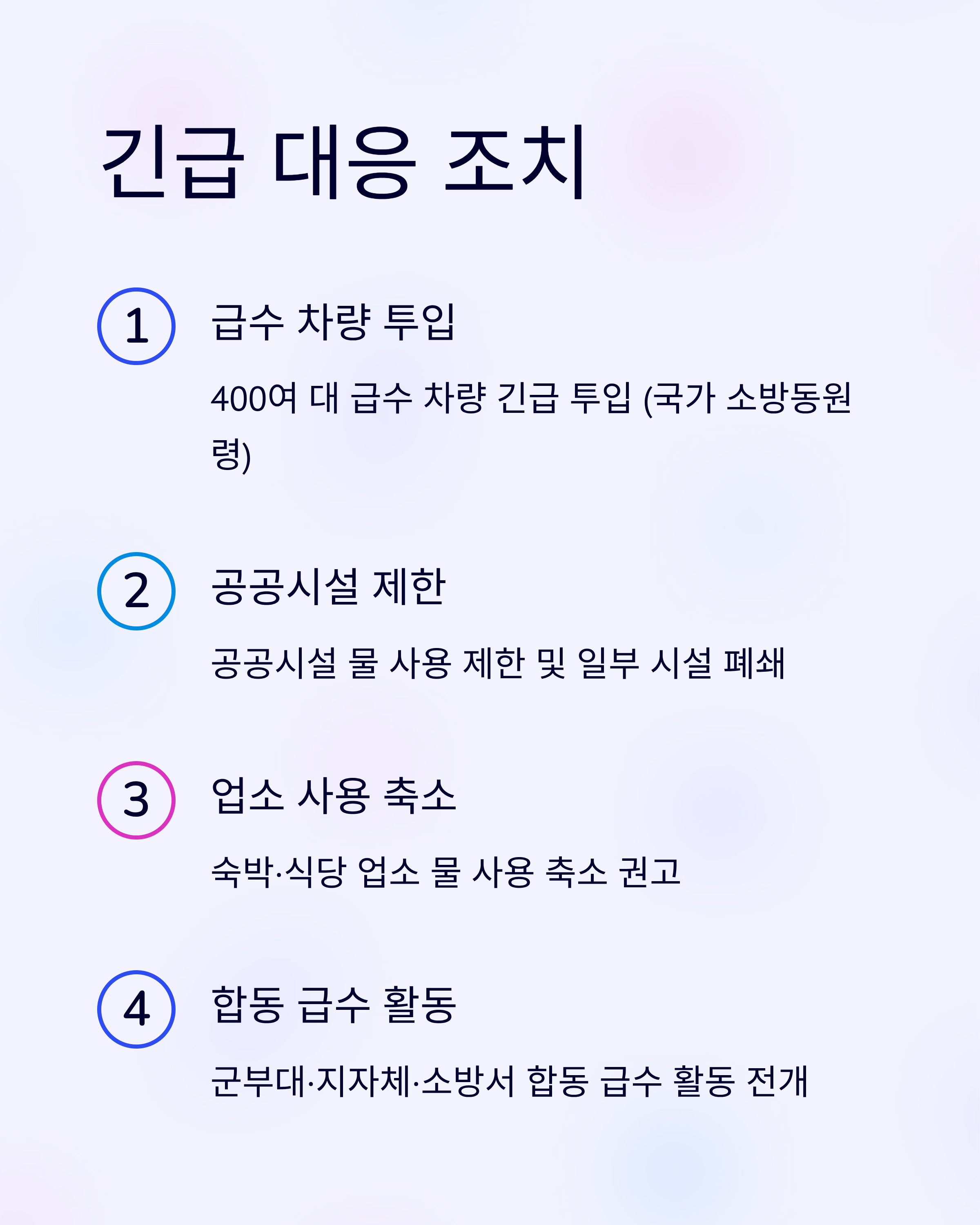 - 400여 대 급수 차량 긴급 투입 (국가 소방동원령)