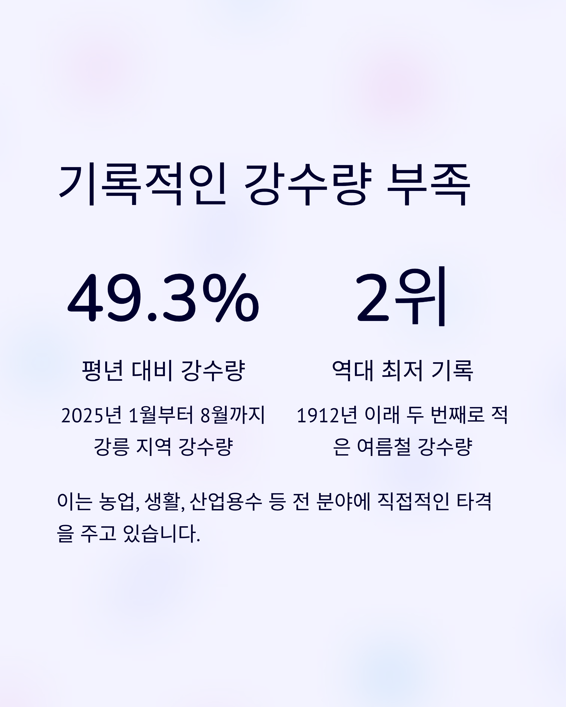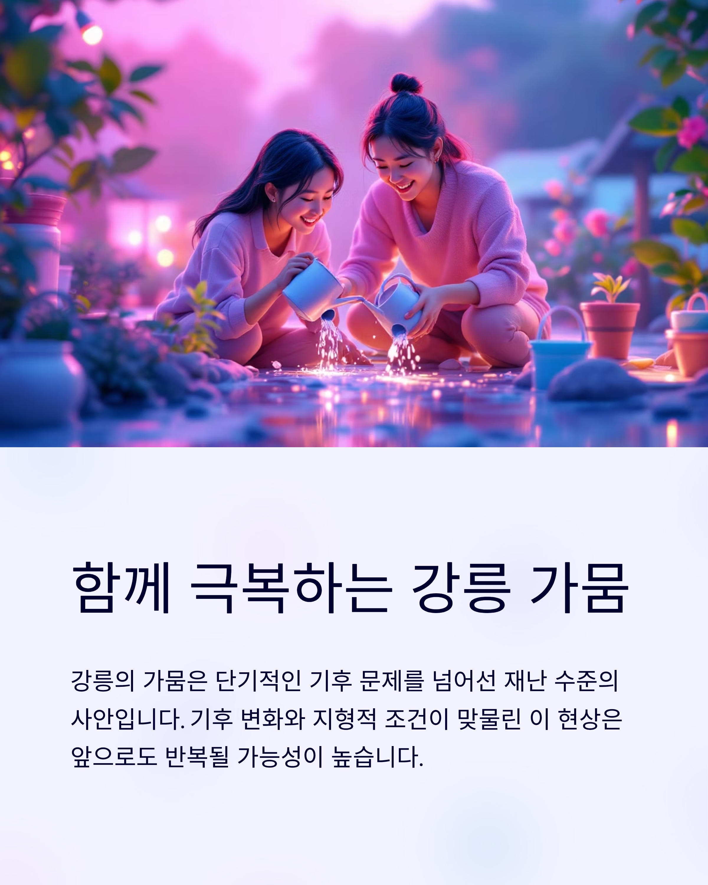 따라서 강릉시와 시민, 국가 모두가 협력해 지속 가능한 물 관리 시스템 구축과 선제적 대응 전략을 마련해야 할 시점입니다.