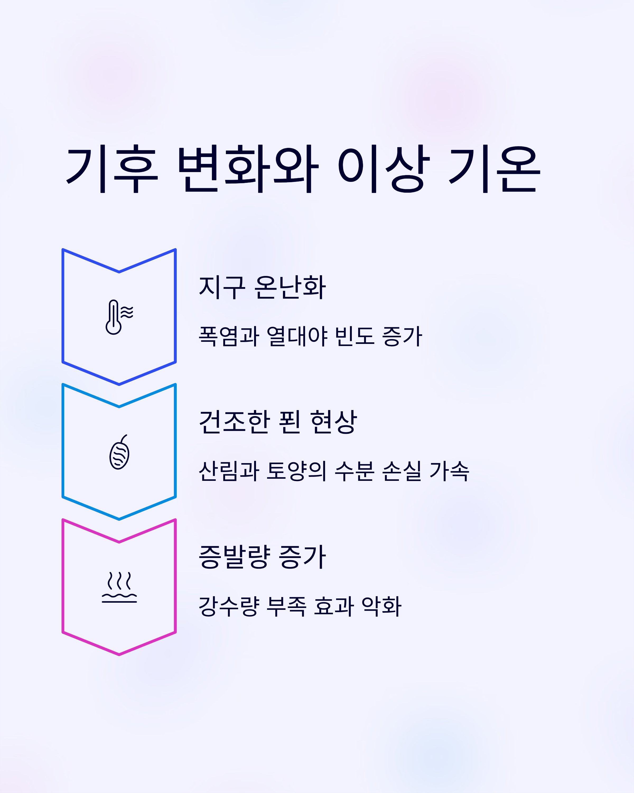 - 건조한 푄 현상이 잦아져 산림과 토양의 수분 손실 가속
