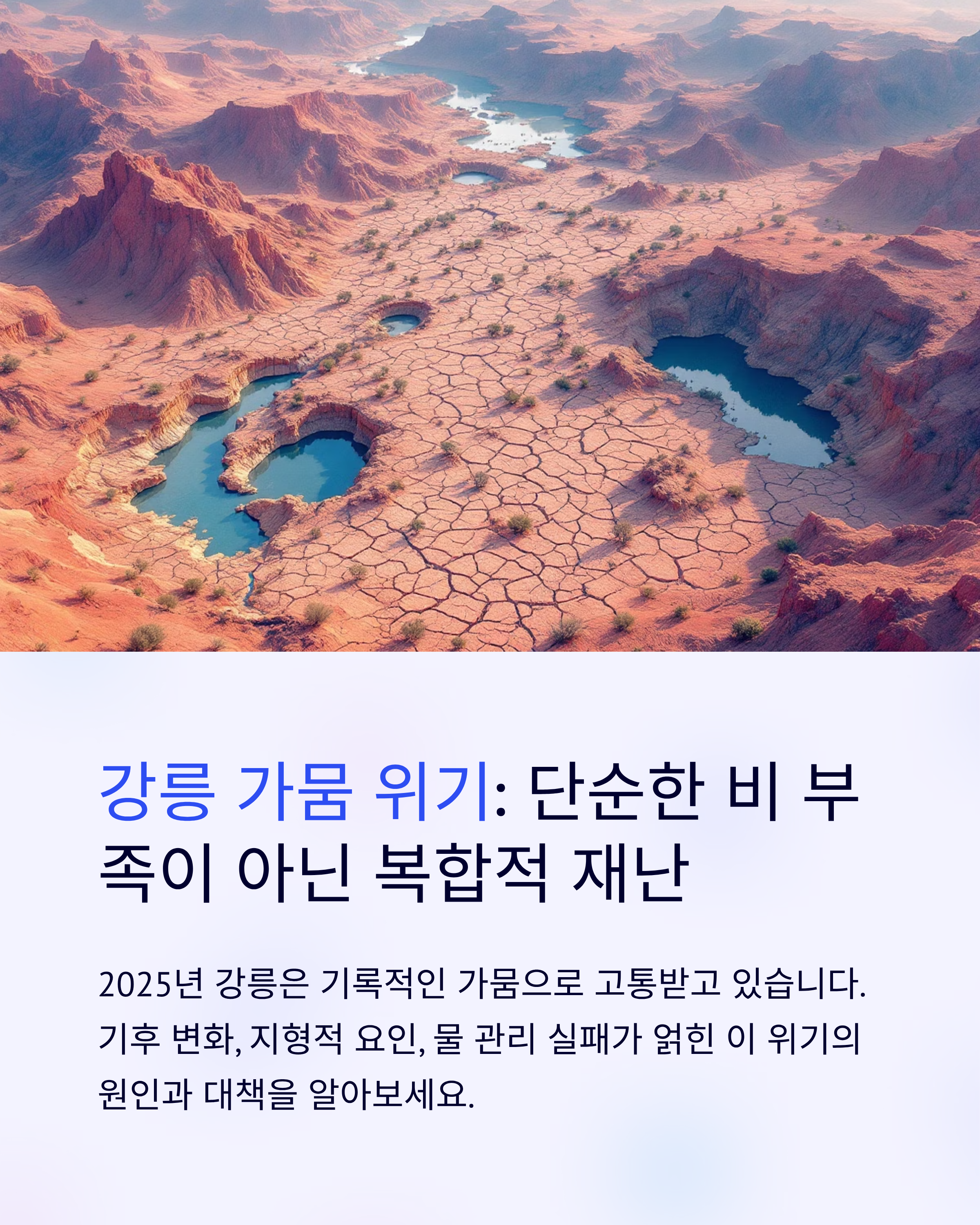 2025년 강릉은 기록적인 가뭄을 겪고 있습니다. 단순한 비 부족의 문제가 아니라, 기후 변화, 지형적 요인, 물 관리 실패 등이 복합적으로 얽힌 재난 수준의 상황입니다. 이번 글에서는 강릉 가뭄의 주요 원인과 대응 대책, 극복 방법까지 체계적으로 정리해드립니다.