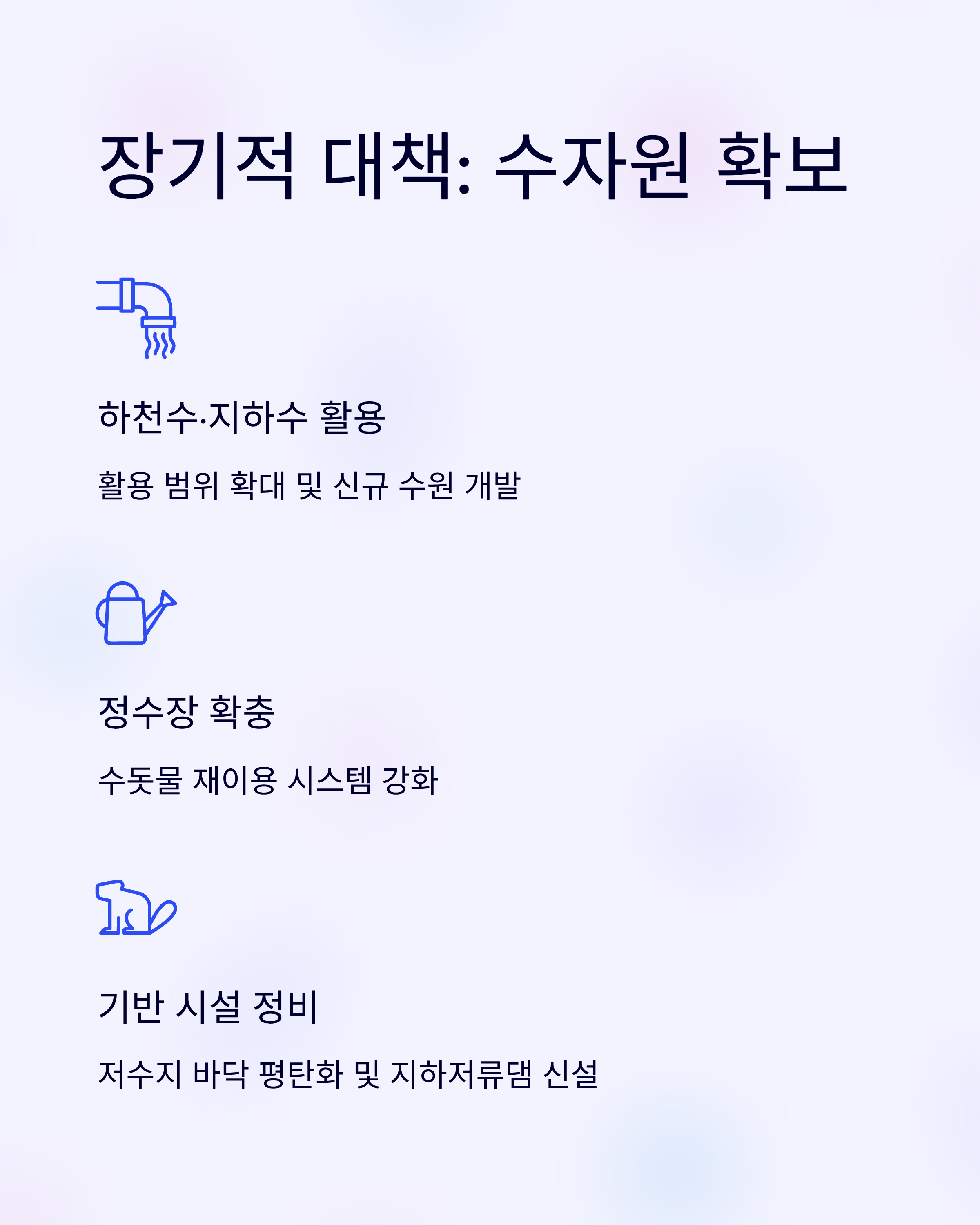 - 2025년 8월: 저수율이 15% 이하로 급락 → 재난안전대책본부 비상 1단계 발동