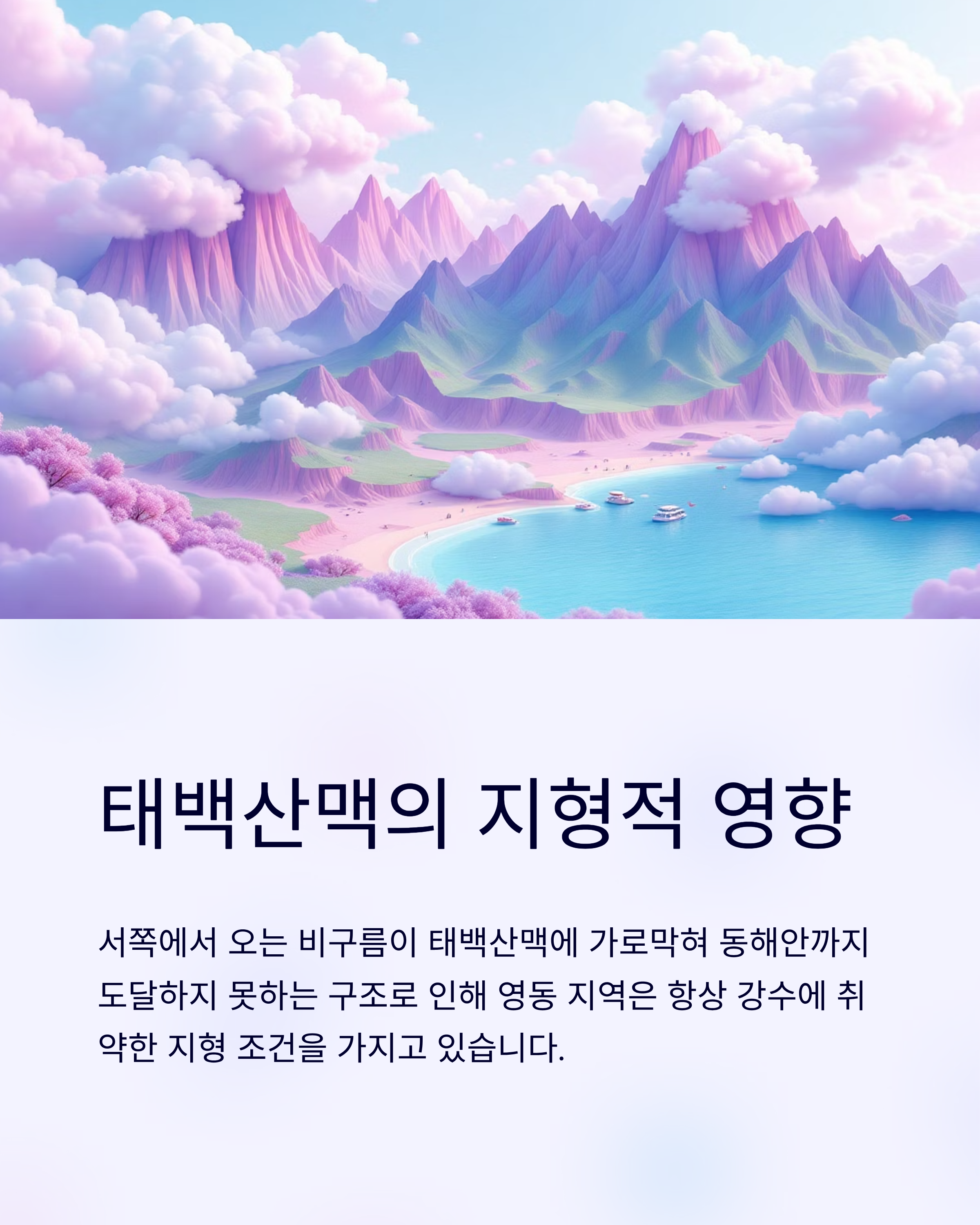 - 이로 인해 영동 지역은 항상 강수에 취약한 지형 조건을 가짐