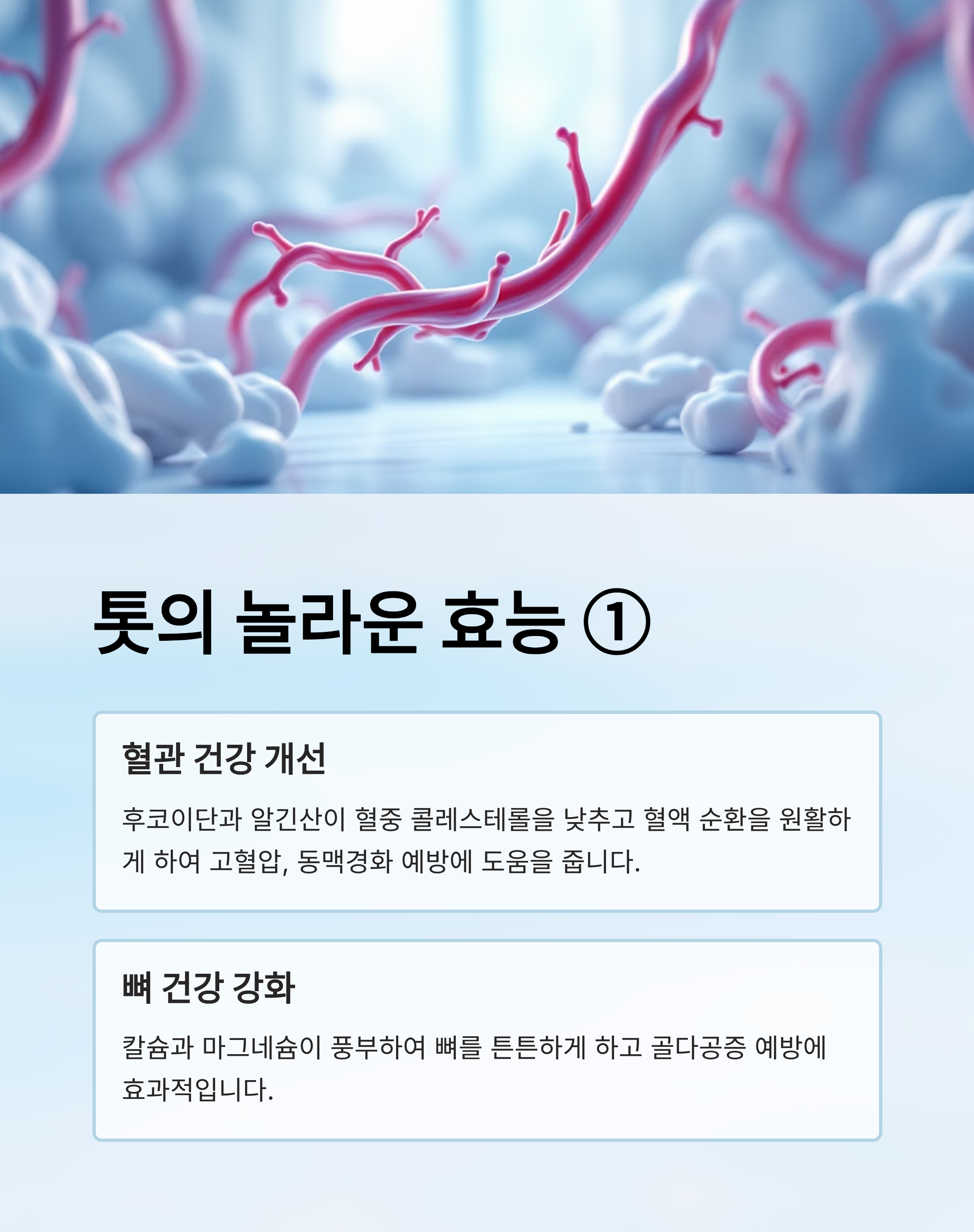 - 고혈압, 동맥경화 같은 혈관 질환 예방에 도움을 줍니다.
